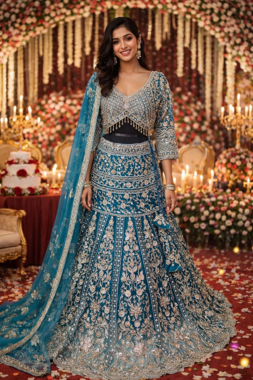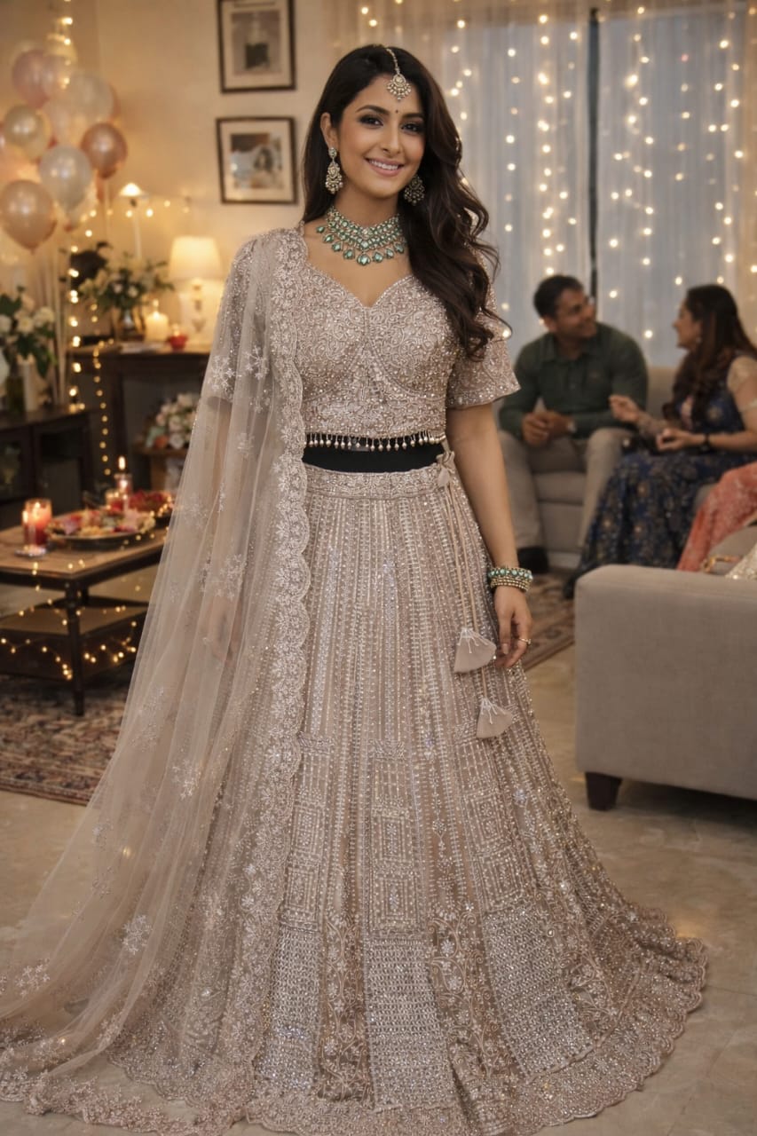 ye-catching lehengas with modern embellishments, ideal for parties, receptions, and festive occasions